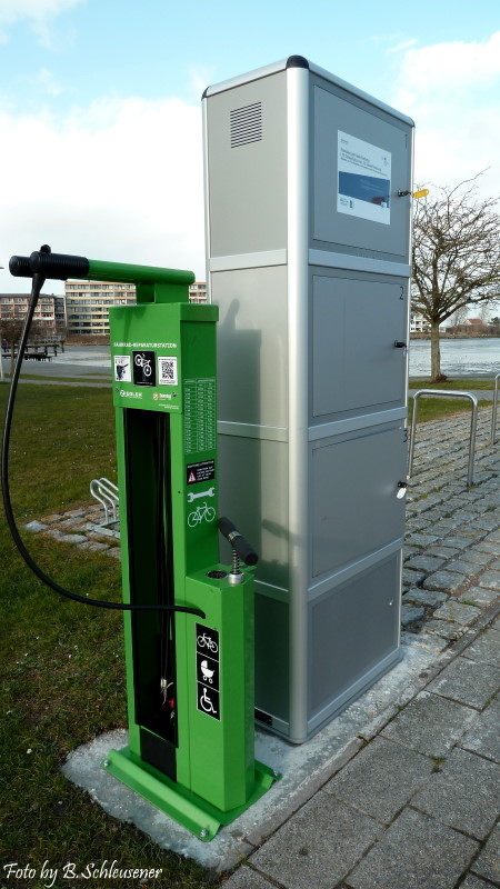 Eine frohe Botschaft für alle Radfahrer. Seit einiger Zeit befindet sich vor dem Aktiv-Hus eine tolle Einrichtung, an der nicht nur an Fahrrädern, sondern auch an Rollern, Kinderwagen und Rollstühlen