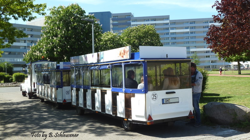 Wer nicht zu Fuß nach Heiligenhafen gehen möchte oder keine Lust hat, dort einen Parkplatz zu suchen, dem bietet die Heiligenhafener Bimmelbahn eine nette Alternative, um in den Ort zu gelangen. Seit 2020 fährt neben dem roten Zug auch ein neues Modell in den Farben blau/weiß. Alle Züge sind der aktuellen Lage entsprechend mit abgetrennten Sitzreihen ausgestattet.