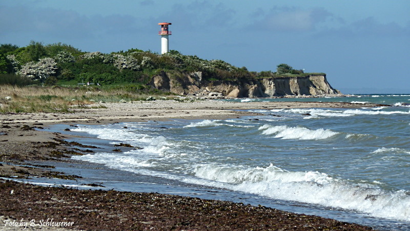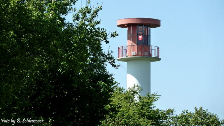 Der Turm gehört der deutschen Bundeswehr und signalisiert mit gelbem und rotem Licht, wenn in der Hohwachter Bucht Schießmanöver der Marine stattfinden.