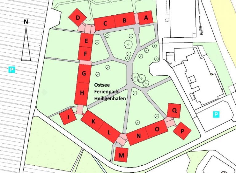 Jede der fast 1700 Wohnung hat eine unverwechselbare Bezeichnung, bestehend aus Hauskennung sowie der Etagen- und Wohnungsnummer. In den Eingangsbereichen, die zwei oder drei Häuser vereinen, gibt es entsprechend viele Fahrstühle, die auf unterschiedlichen Etagen halten und somit die Wartezeit auf ein Minimum verkürzen. Für die Feriengäste steht an der Westseite des Ferienparks ausreichend Parkraum zur Verfügung. Die Eingangsbereiche von der Parkplatzseite sind barrierefrei. Der mit Rasen und Bäumen begrünte Innenhof ist mit Bänken ausgestattet. Es gibt sogar einen ganzjährigen Linienbus-Verkehr, mit dem man schnell nach Heiligenhafen kommen kann.