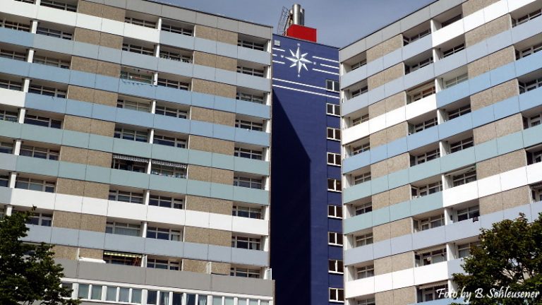 Als weiteres Projekt wurden die sechs Treppenhaustürme nach dem gleichen Muster saniert und farblich gestaltet.
